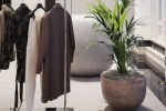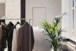 Custom mirror-finished stainless-steel racks and bladed shelving set against matte grey plaster walls and warm grey carpet serve as the foundational canvas of the space, showcasing the Fear of God’s modern vision of menswear rooted in the easy elegance of American luxury.