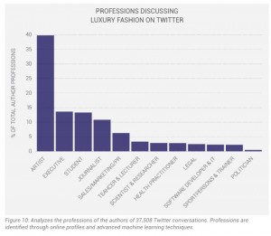 luxury fashion brand and audience activity – professions discussing luxury fashion on twitter