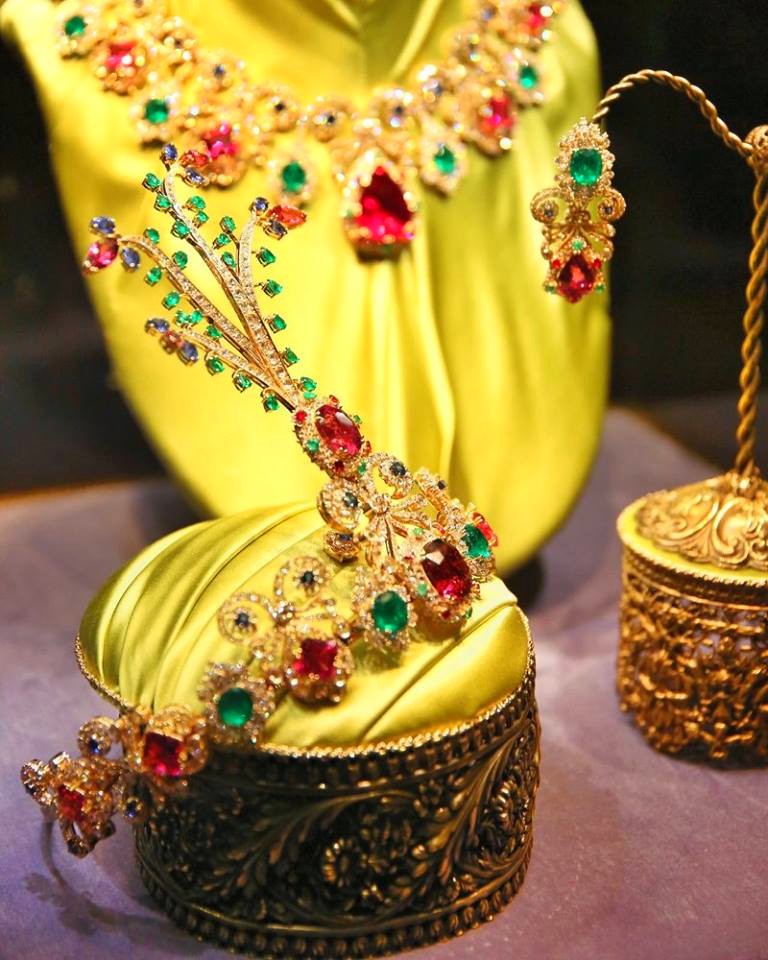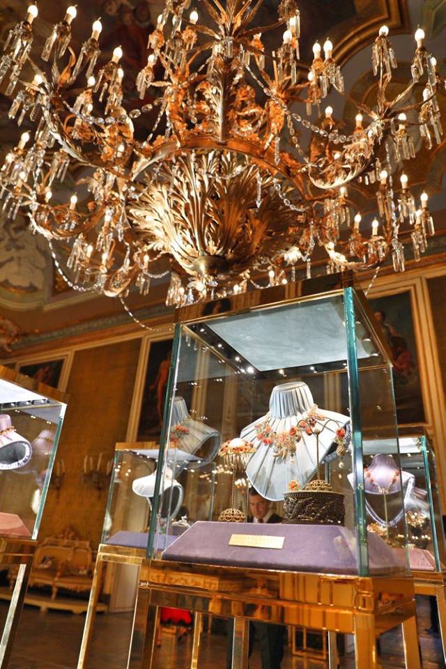 Gabbana Alta Gioielleria Donna and Alta Gioielleria Uomo collections. Red gems contrast the intricate chandeliers at Palazzo Gangi, showcasing