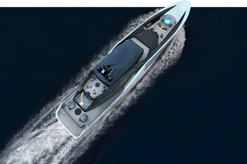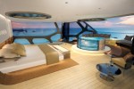 The architectural approach of using large glass elements and organic structures provides the interior areas with more luminosity and creates an exciting conjunction between interior and exterior zones, offering much more usable space than other yachts of the same range.