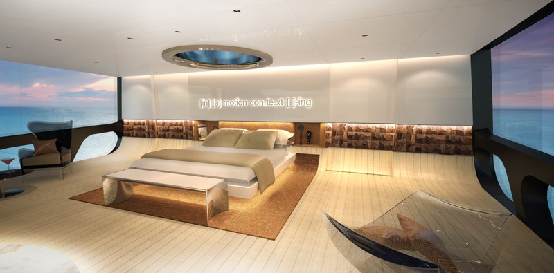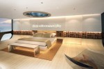 The interior layout with its rather unusual configuration is thought to profit at the most from the available space by connecting the living zones in logical orders and forming multi-purpose areas where appropriate. This approach of zoning allows introducing several special features, like a hot air balloon departure, a private starlight observation lounge, a health spa and different thematic bars, taking the spirit of an explorer vessel to another level.