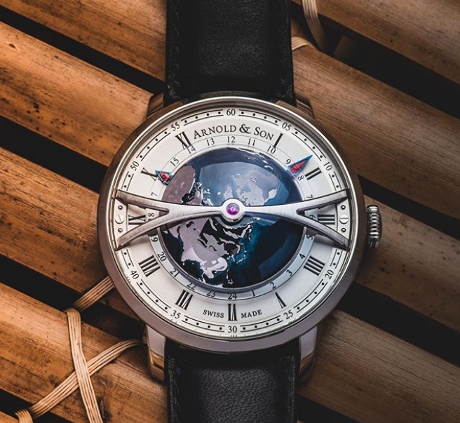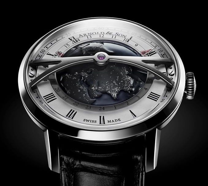 Globetrotter Night: Arnold & Son has created a timepiece for the modern-day navigator. Arnold & Son Globetrotter Night showcases 3D world-time indication on the earth.
