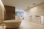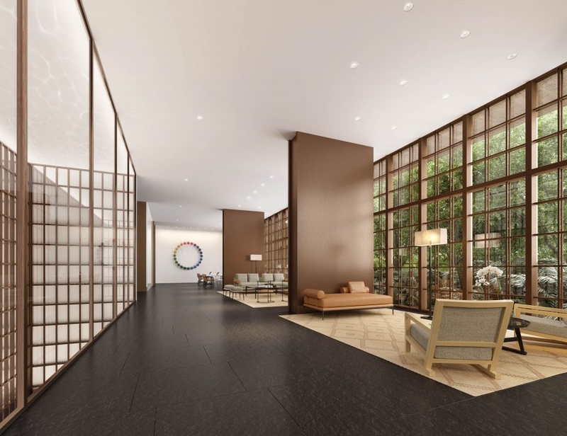 A complete suite of resort-style amenities includes a 75′ indoor swimming pool, an outdoor swimming pool, a rooftop tennis court, state-of-the-art fitness center and yoga studio, sauna and steam room and a tranquil meditation pond. Additional facilities include a children’s playroom, residents’ lounge with billiards, catering kitchen for out-of-home entertaining and private temperature-controlled parking spaces.