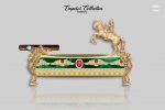 The Emperor Collection ashtray pays tribute to Napoleon, featuring a detailed depiction of the French leader riding a horse. Cast in 18k gold, this ashtray boasts a staggering 440 carats of VS diamonds, rubies, and sapphires, exuding opulence and grandeur.