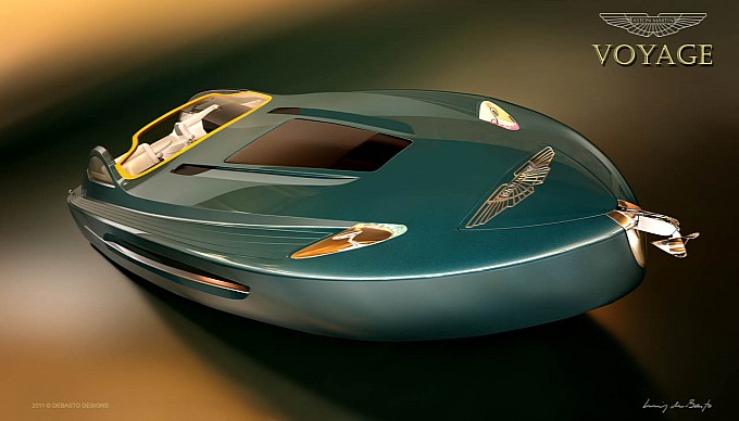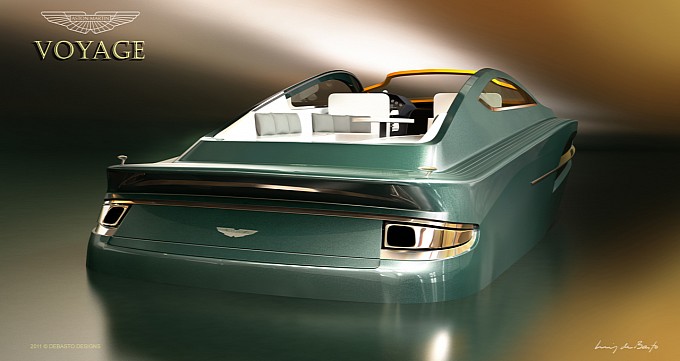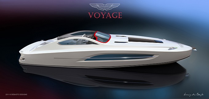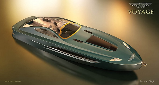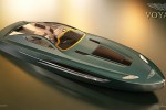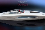 Aston Martin Voyage Concept Boat carries the characteristic of Aston Martin cars: the roof, the window shapes, front and rear lights, side ventilation, hood details, and also the frontal grille here are translated into the windshield shape.