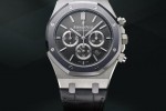 Audemars Piguet Royal Oak, the first luxury sports watch, remains an icon of sporting elegance paying a tribute to Leo Messi – world’s best football player. The Limited edition (500 pieces) is a selfwinding chronograph with date display, small seconds at 6 o’clock, case in steel, tantalum bezel, brushed anthracite dial, strap in anthracite.