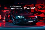 The Audi e-tron GT concept show car, a highly dynamic coupé with a low floor, made its debut at the Los Angeles Auto Show 2018.