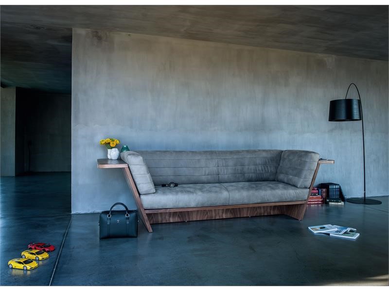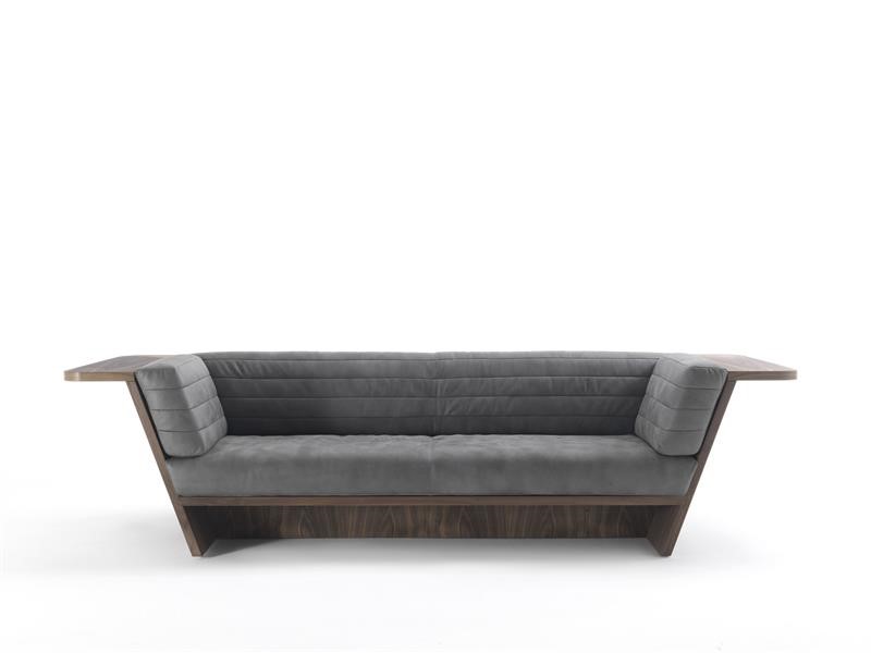 DYNAMIK – Sofa with wooden shell with support shelf running along the entire perimeter. Unique cushions for seat and back characterized by visible stitching.