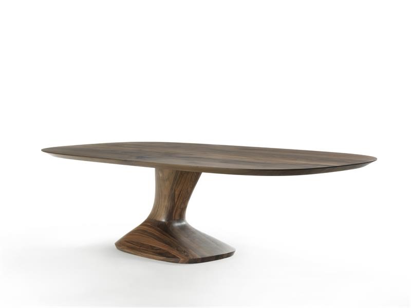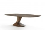 SPEED – Table completely made of solid wood with table top made of glued lists and smoothed edges, characterized by an asymmetrical leg with base positioned laterally.