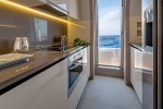 Azimut 80 layout comprises 4 cabins, all with bathroom, including the owner’s cabin extending over the full beam. The yacht can accommodate 8 guests and includes an enormous flybridge, designed for maximum versatility of use.