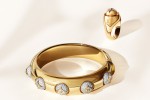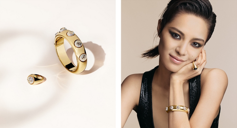 The collection includes seven playful rings that offer a versatile interpretation of the House’s iconic design. Worn as single rings or stacked, they are available in malachite, onyx, white agate, pink opal, diamonds or plain gold in both yellow and pink gold. Other pieces of the collection include statement piece signet rings and sumptuous bracelets with paved diamonds or onyx, as well as geometric monogram flower pendants that can be worn on short or long necklaces or bracelets, with earrings to complement the contrasting shapes.