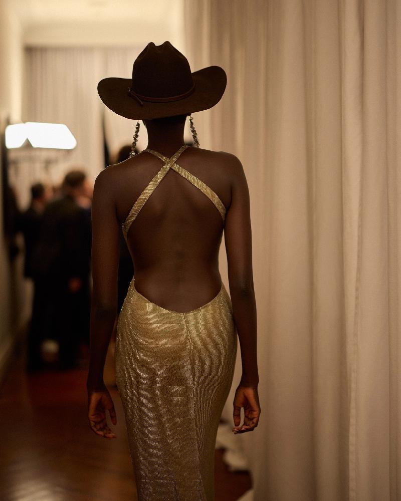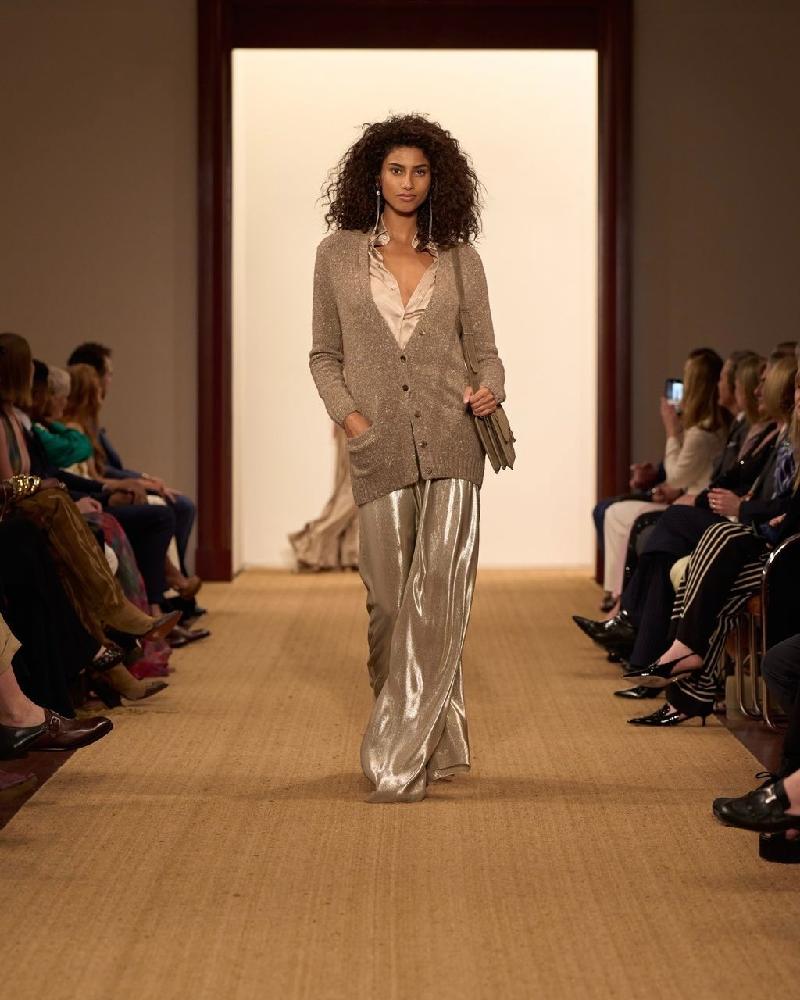 With a gentle embrace of neutrals and the shimmer of metallics, the collection paints a portrait of a woman who exudes natural allure and unwavering confidence. Each piece, meticulously crafted, speaks to Ralph Lauren‘s most intimate inspirations—tailored jackets whispering of sophistication, draped knits embracing comfort with style, and bias-cut gowns dancing with effortless grace. The collection marries minimalism with artistry, weaving a tapestry of embellishments—beads and tweeds, patchwork and adornments—that elevate each garment to a realm of timeless allure.