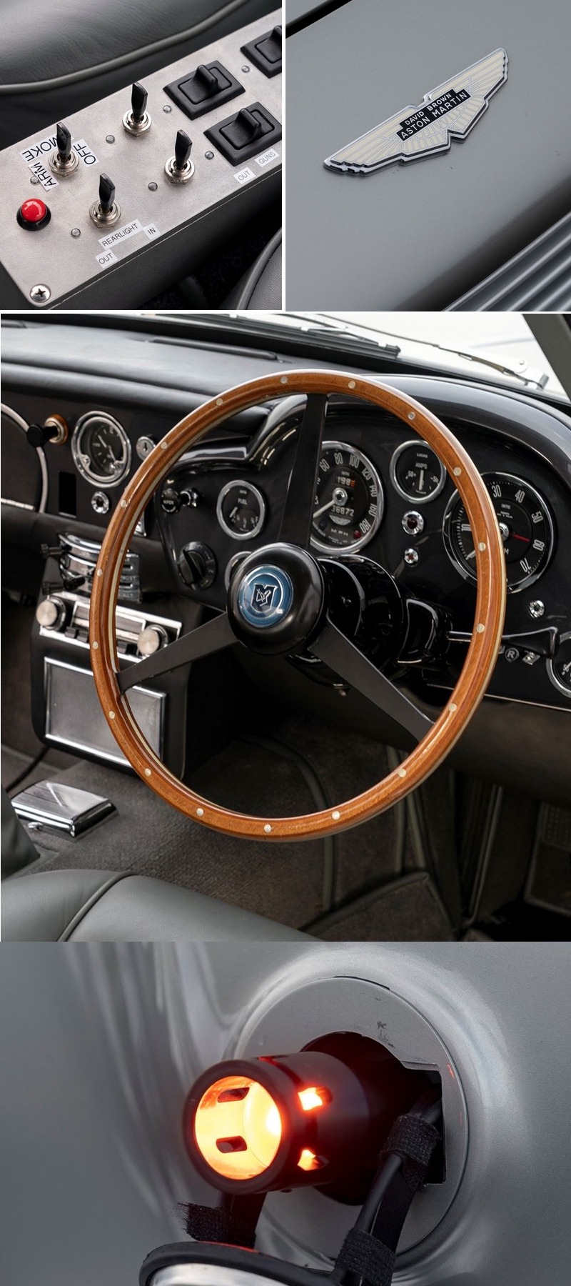 Discover the world’s most prestigious gatherings & exhibitionsThe list of Bond-inspired gadgets includes features familiar to viewers of the classic 1964 big screen hit. On the exterior rear smoke screen delivery system, a rear simulated oil slick delivery system, revolving number plates front and rear (triple plates), and simulated twin front machine guns are some of the gadgets brought from the movie to the real life. The list of Bond-inspired equipment includes bullet resistant rear shield, battering rams front and rear, simulated tyre slasher, and removable passenger seat roof panel (optional equipment).