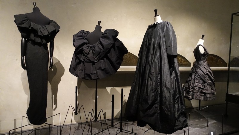 black, of course. Variations of black repeated in over a hundred pieces from the Galliera collections and the archives of Maison Balenciaga.