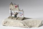 In 2017, Banksy opened his The Walled Off Hotel in Bethlehem, a living art installation with which he brings the Palestinian oppression up for discussion. After all, as a Social Artist he always sympathizes with the fate of mankind and acts – in all conscience and good faith – accordingly. Between 2017 and 2020, Banksy issued limited editions of miniature multiples of the dividing wall in Palestine, which were only available to guests staying at The Walled Off Hotel. Indeed, deliberately creating a scarcity is one of Banksy’s trademarks. The various shapes of the ‘souvenirs’ executed in polymer resin were created by Banksy himself, while he also supervised the graffiti decorations carried out by Palestinian artists. These decorations copy the graffiti that can be found on