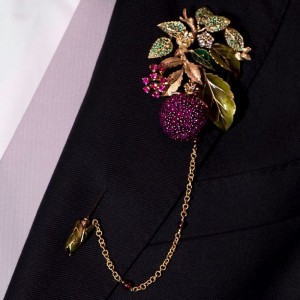 The Dolce&Gabbana Alta Gioielleria stickpin brooch in yellow and white gold with rhodolite garnets