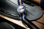 Heritage Chrono Blue is also distinguished by its two counters appearing inside blue trapeze-shaped surrounds: one for the small