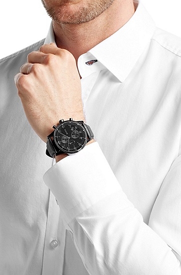 Hugo Boss launched the BOSS Black Aeroliner with a silver bracelet paired with a metallic blue chronograph dial. The BOSS Orange New York features a black leather strap and black dial with bold white numbers are offset with a hint of orange.