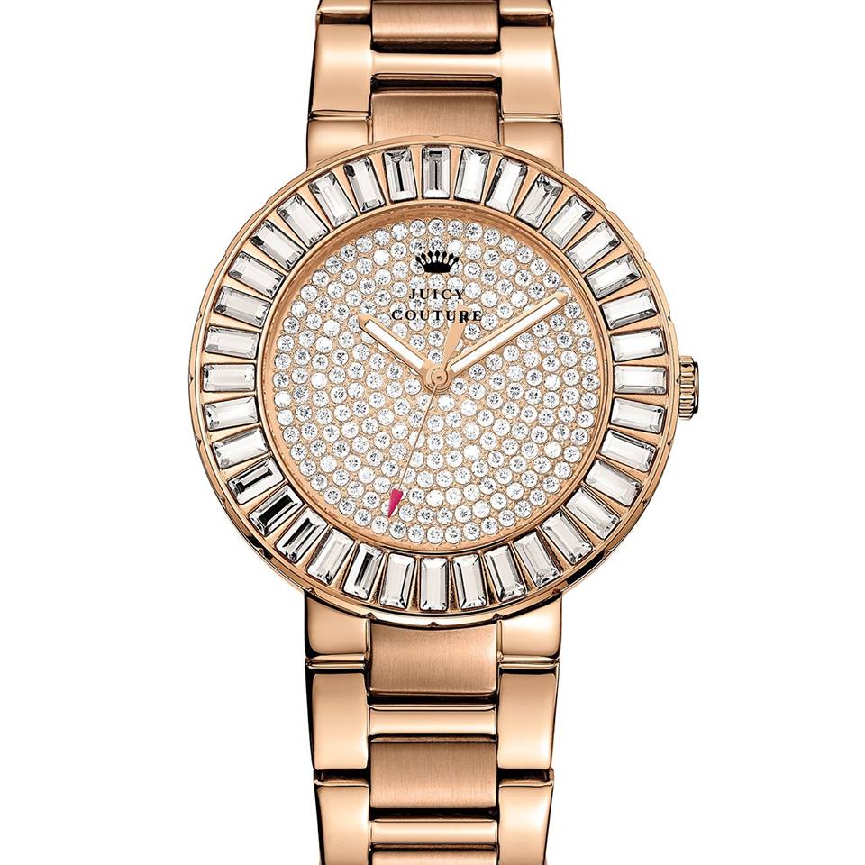 Juicy Couture’s Juicy girl indulges in the high-impact embellishment and rich tones of the new Luxe Couture family. The new imepieces designed with set crystal bezels and stainless steel, gold-plated, or rose gold-toned bracelets with dials offered in soft sunset hues touched with shimmering diamond dust – clean and crisp sport details, redefined in a romantic and feminine way.