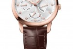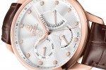Enhanced by the rose gold that surrounds the 12 diamonds on its dial and embellishes the hands and bezel, this piece of rare beauty features a Swiss automatic movement with complication enclosing the hour, minute, second, date, day and power reserve functions. The choice of a strap in brown alligator and folding clasp also adds true elegance to this limited edition.