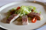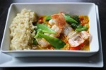 As a starter, Van Hecke chose to offer smoked eel from Damme, served with tarragon-yogurt sauce and fennel puree. For the main course he proposes North Sea shrimp prepared with curry of sweet potatoe and steamed snow peas. His beer and cheese selection is also 100% from theprovince of West Flanders: Damme and Apero Cheese from Bruges and Brugge Tripel beer.