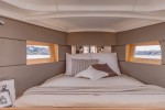The cruiser can have two or three fitted cabins, a large galley, mainsail arch, helmsman seats and swim platform. While more conventional, its owners can choose the layout configuration and some components based on personal inclination.