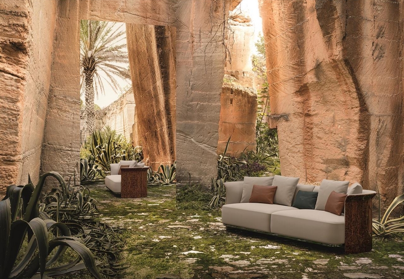 reinterpreted for fabric. Harnessing the natural power of marble, it restores value to its unique dust, transforming it into a textile that offers unmatched technical performance and aesthetic qualities. The precious marble powder fabric gracefully dresses the 2021 Bentley Home Collection, accentuating the elegant shapes of the furniture designs.