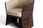 Pieces are available either fully upholstered in leather or fabric, or with the frame veneered. The options echo Bentley’s automotive codes and include Burr Walnut or Smoked Liquidambar.