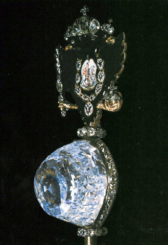 Orlov Diamond was named after the Count Grigory Orlov who prepared the ascension of the Empress Catherine the Great of Russia. Catherine was always generous with her best ally. To show her gratitude she decided to offer a huge diamond weighing 198.62 carats. The gem was incorporated into the royal scepter.