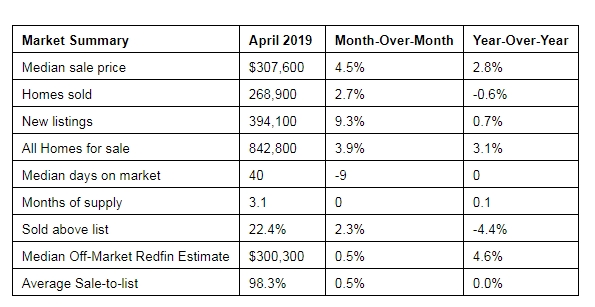 U.S. home-sale prices edged up 2.8 percent year over year to a median of $307,600 in April, according to a new report from technology-powered real estate brokerage Redfin. This marks a rebound from March’s slight annual price decline and a return to a more sustainable level of price growth than the 7 to 9 percent home price increases seen early last year.