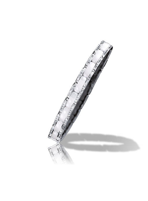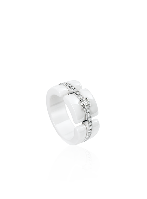High-Tech ceramic, a contemporary material introduced for the first time ever to the Place Vendome by Chanel Fine Jewelry, allows for bold contrasts of colors and materials and keeps within the aesthetic codes of the Chanel maison. The material is valued by watchmakers for its light weight, scratch resistance, durability and smooth touch.