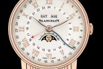 Since the early 1980s, Blancpain’s complete calendar moon-phase timepieces have been a signature of the house. Their design has firmly established itself as a classic arrangement: day of the week and month in windows, date with a supplemental blued serpentine shaped hand reading upon scale positioned around the chapter ring, and placement of a moon-phase window at 6 o’clock.