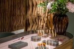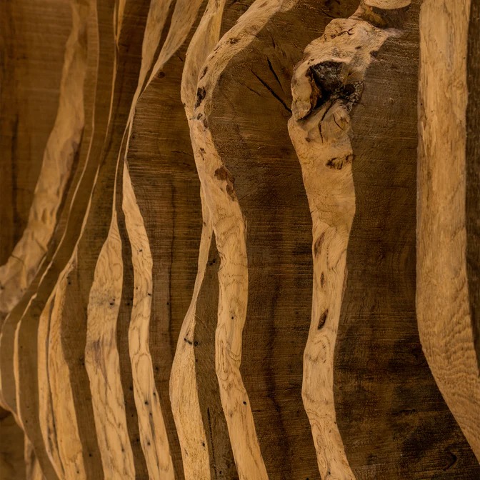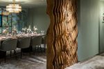 Of particular noteworthiness, one of the key features in the space is an extensive oak screen, as a wall finish and sub-division between dining room and bar room. Made from a oak tree planted over 300 years ago, that had been felled as part of a major UK infrastructure (or civil engineering) project, therefore being totally sustainably sourced. Given new meaning by Tom Hoblyn and sculpted by Jan Hendzel (for Boodles Secret Garden at Chelsea Flower Show in 2021) now entering its ‘third life’, only a few miles from where it was first planted.