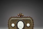To commemorate the 250th anniversary of KPM, Bottega Veneta created a limited edition of its iconic Knot. The Knot is one of Bottega Veneta’s most beloved handbags, a small, rounded box clutch conceived in materials and designs ranging from the refined to the fantastical. This exquisite version is created from a combination of exotic and classical accents; starting with bronze Ayers, the front side is embellished with a unique porcelain medallion featuring hand carved angels that has been produced exclusively for Bottega Veneta, set in Oro Bruciato and surrounded by a delicate contrastingtrim of brown cubic zirconia. On each side of the medallion, is a simple and shiny porcelain emblem. The frame and Knot closure, also in Oro Bruciato, are adorned with brique colored verre irise – poured glass, enriched with sparkling gold powder, and hand cut to resemble iridescent gemstones – applied one by one, completely by hand. Each bag ia benumbered with the words “250th Anniversary KPM” inscribed on a sterling plate inside the clutch.