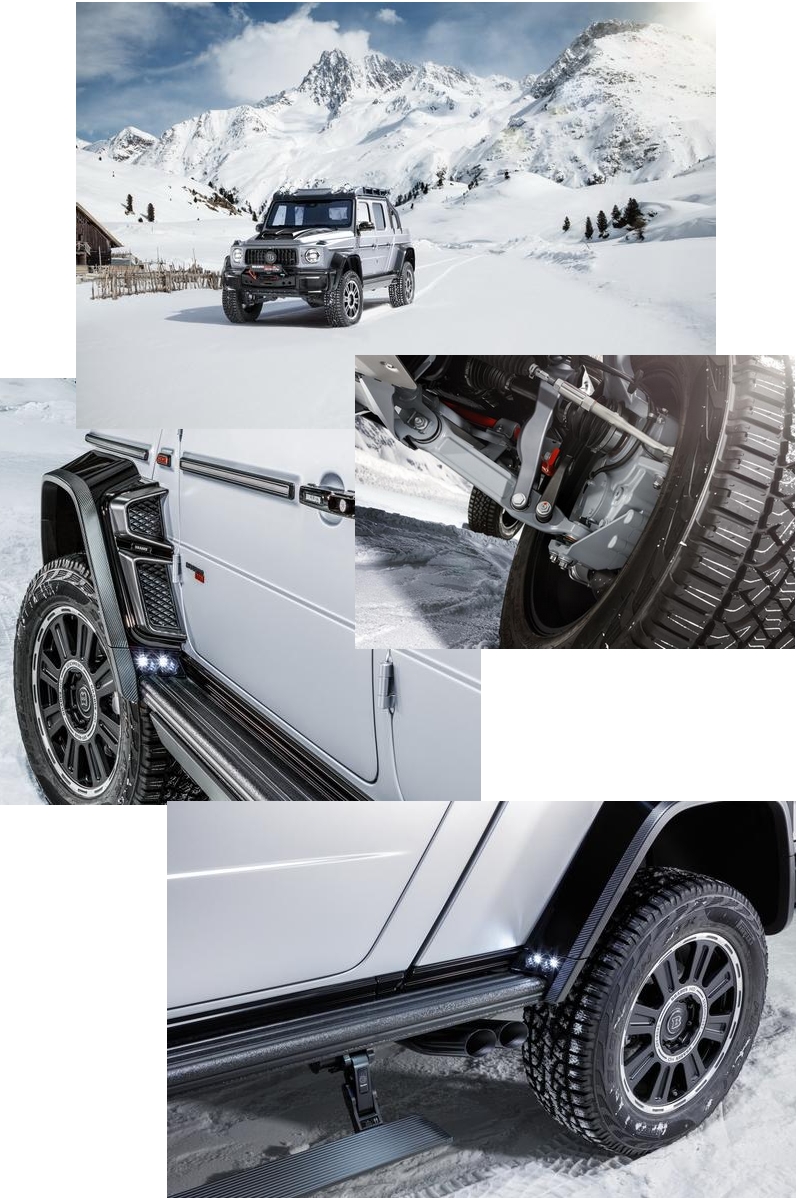 Based on the Mercedes G 63 AMG, the engineers, technicians and designers of Brabus developed a high-performance tuned pickup with outstanding off-road capability, which they achieved with a newly designed Brabus special suspension with portal axles. This results in a ground clearance of 49 centimeters (19.2 inches).