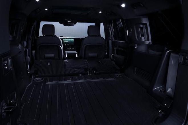 Additionally, Land Rover introduces the Defender 130 V8 with a 5.0-litre supercharged V8 engine producing 500PS and 610Nm of torque, allowing the car to accelerate from 0-100km/h in 5.7 seconds (0-60mph in 5.4 seconds). It is available exclusively in Carpathian Grey or Santorini Black colors and comes with quad outboard-mounted exhausts, 22-inch Satin Dark Grey alloy wheels, and heated and cooled electric driver memory seats finished in Ebony Windsor Leather with Dinamica suedecloth and Robustec fabric. The car also comes with a 14-way heated and cooled electric driver memory seat, suedecloth heated steering wheel, Ebony Morzine headlining, Four-Zone Climate Control, heated row-three seats, climate seats in the second row, Meridian Sound System, Head-Up Display, Interactive Driver Display, Cabin Air Purification Plus, and Pivi Pro infotainment.