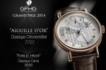 At 2014 Grand Prix d’Horlogerie de Genève, GPHG (Geneva Watchmaking Grand Prix), Breguet won the most prestigious prize of “Aiguille d’Or” for the Classique Chronométrie during the annual awards ceremony held at Geneva’s Grand Théâtre. The Breguet Classique Dame winning the Public Prize.