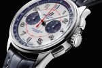 The Breitling Premier Bentley Mulliner Limited Edition is limited to 1,000 pieces. It features a 42-mm stainless steel case presented on a blue alligator leather strap echoing the Imperial Blue leather interior of the car. Its elegant silver dial recalls the Bentley Continental GT Mulliner Convertible’s dashboard clock. The watch boasts blue subdials – a 30-minute counter at 3 o’clock and a small seconds subdial at 9 o’clock – an indication of the Breitling Manufacturer Caliber 01, with an impressive power reserve of approximately 70 hours.