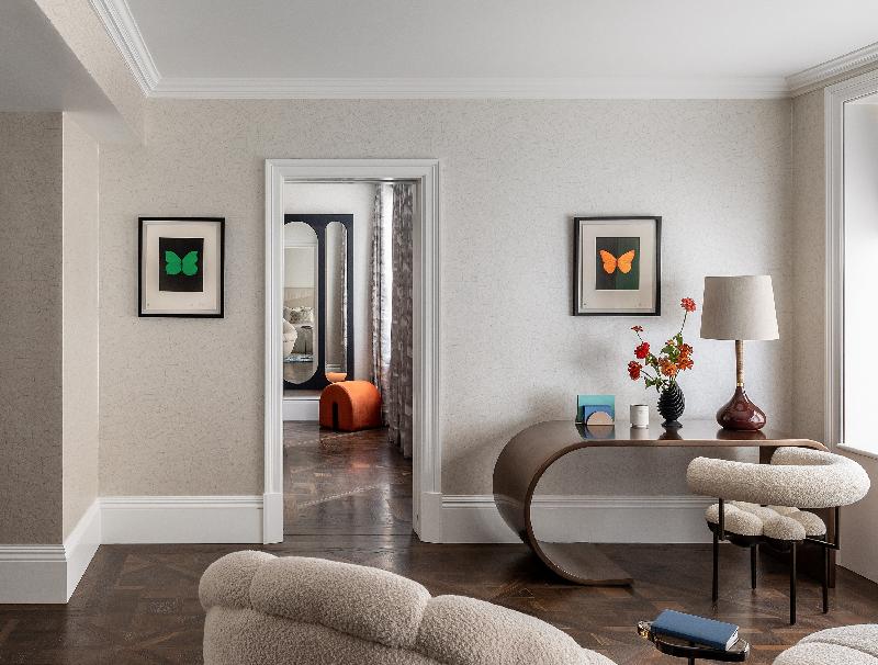 “The history and architecture of No 1 Palace Street, The St. Regis Residences contribute to the luxurious sense of place with many of the historical and listed features, such as the fireplaces and original cornicing, having been lovingly restored,” says Amy Wardell, Head of Brand at Northacre Properties. “The striking 3.6m floor-to-ceiling heights result in an elegant entertainment space with the vista of Buckingham Palace gardens as a dramatic backdrop. Luxury architectural interior design studio, Oliver Burns, has paid homage to the striking architectural features throughout whilst masterfully bringing the outside in through the story of the Palace Gardens to create a unique turnkey home. It has been wonderful to see each piece of the design come to life and witness the incredible dexterity and talent of so many skilful British makers.”
