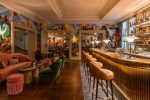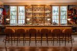 Internationally acclaimed designer Olga Polizzi, in collaboration with Sarah Daniels of DO Design Studio, has woven a tapestry of deep jewel-like tones and playful textures, set against stunning Art Deco-inspired stained glass windows. The Surrealist theme comes to life with bespoke mural-like wallpaper by contemporary designer Adam Ellis, inspired by Magritte’s “Femmes” (1922), adorning the walls, juxtaposed against a striking long brass bar at center stage.