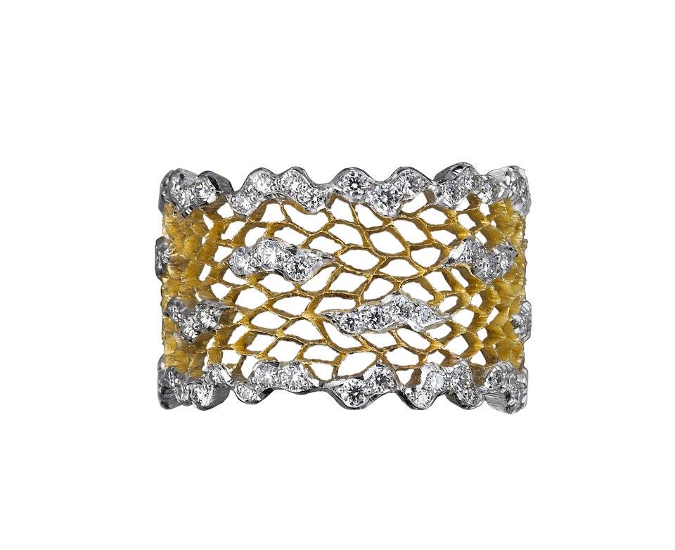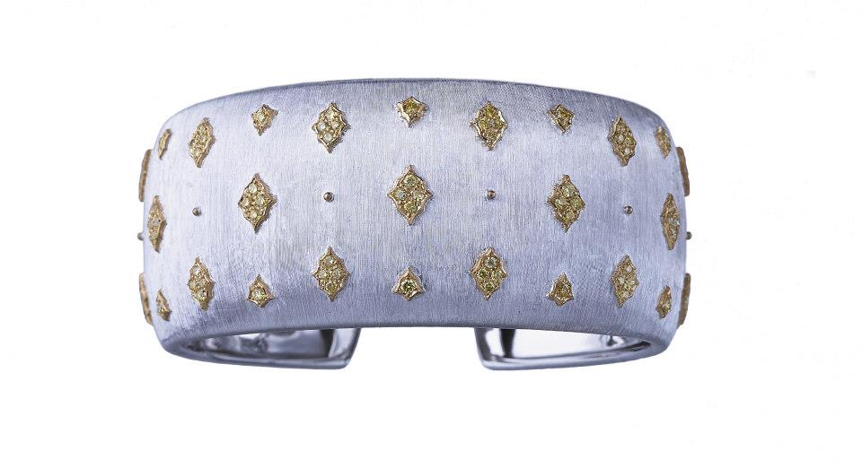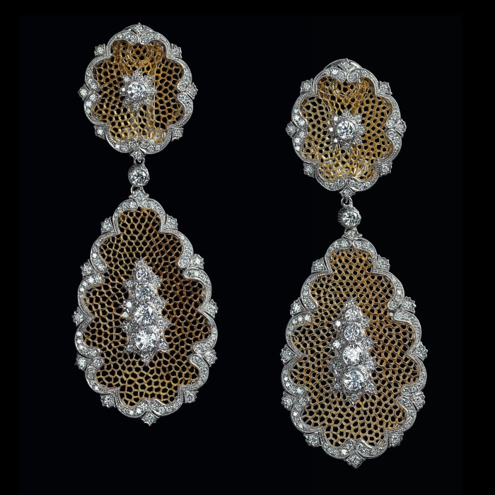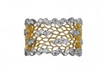 One of the shining stars of the Buccellati‘s stand at Baselworld 2013 was Florence Brocade Set. Like many other Buccellati’s sets inspired by ancient laces or fabrics, the Florence Brocade Set is a total challenge: the main one was to create an enchainment technique leaving the proportions and the balances of the design unaltered, perfectly playing with the light refraction and the creative element of the design itself.