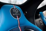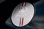 Behind the alloy wheels painted in “Nocturne” matt black, the bright blue (French Racing Blue) brake calipers are visible. To obtain an immaculate finish, the aluminium filler cap is sandblasted and hand-polished. The “110 ans Bugatti” emblem, with the French flag running vertically through the logo, features at the centre of the cap.