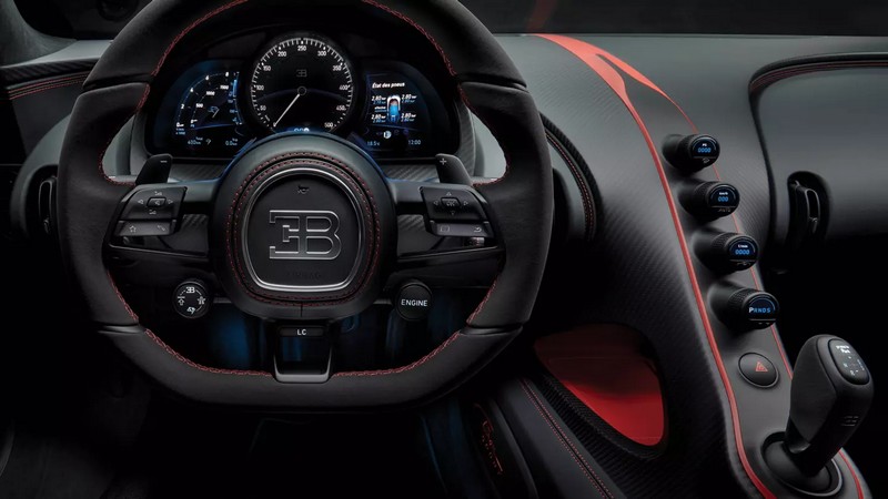 The Chiron Sport benefits from a new dynamic handling package. The Bugatti developers have defined a stiffer suspension. This includes a new control strategy for the shock absorbers, which react 10 percent more stiffly than on the Chiron on average. The steering has also been modified without sacrificing its outstanding direct feel and its calculable performance. These new settings only take effect in the Handling mode of the Chiron Sport, which is therefore distinguished from the EB mode more clearly for the driver.