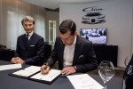 Bugatti CEO Stephan Winkelmann and Champagne Carbon CEO Alexandre Mea shook hands after having signed the contract at the Bugatti headquarters in Molsheim, this way officialising the partnership between the two French luxury brands. A visible-carbon-fiber-coated bugatti chiron and a bottle of the new champagne carbon ‘ǝb.01’ in its carbon fiber wrap bore testimony of this exclusive cooperation.