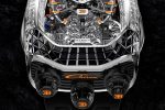 engine animation that reproduces the motion of a 16-cylinder sports car, a flying tourbillon set on a 30º inclined, and the well-established tonneau-shaped case meant to emulate the streamline design of the famed Bugatti hyper sports car.