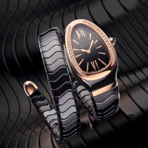 baselworld 2016 – bvlgari Serpenti Spiga watch – the fresh and youthful charm of the Bulgari’s snake in black high-tech ceramic and pink