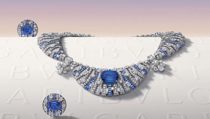 Set with 192 buff-top sapphires and one majestic central Cornflower sapphire, Bvlgari demonstrates its mastery of this exquisite blue gemstone.