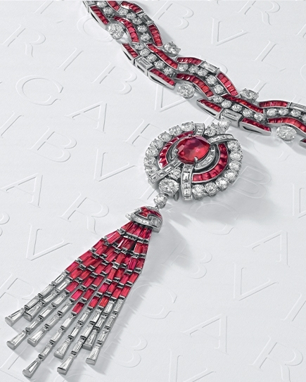 Discover the world’s most prestigious gatherings & exhibitionsBvlgari’s famed craftsmanship bows in service to the preciousness of the Ruby Metamorphosis necklace’s 12.02 kt central antique cushion ruby. The necklace and ring are a true celebration of the ruby as the most passionate of the Magnifica collection’s protagonists. An ingenious feat of jewelry ingenuity, the pendant, and tassel of this necklace can detach. The wearer then has the freedom to adorn themselves with a breathtaking brooch, choker, or sautoir. An ode to beauty and opulence shining through the 6.80 carats of the show stopping pigeon blood ruby, the beating heart of the magnificent Ruby Metamorphosis ring. The highest expression of skilled craftsmanship, the piece represents a long story of artistry all in one small precious piece.