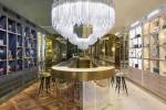 According to Bulgari, the store concept is based on duality, with combinations of contrasting materials, colors, objects and interior design details. An imaginary line separates the rooms, one side with warm tones and materials – precious woods, enveloping velvets, retro finishings – the other with minimalist lines, ethereal marbles, bright tones and ultra-white leather.