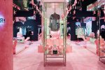 The installation celebrates both institutions’ iconic colour palettes – from Burberry beige to Printemps pink – and features carpets imprinted with the Thomas Burberry logo, contrasting mirrored surfaces and black and white watercolor print walls.